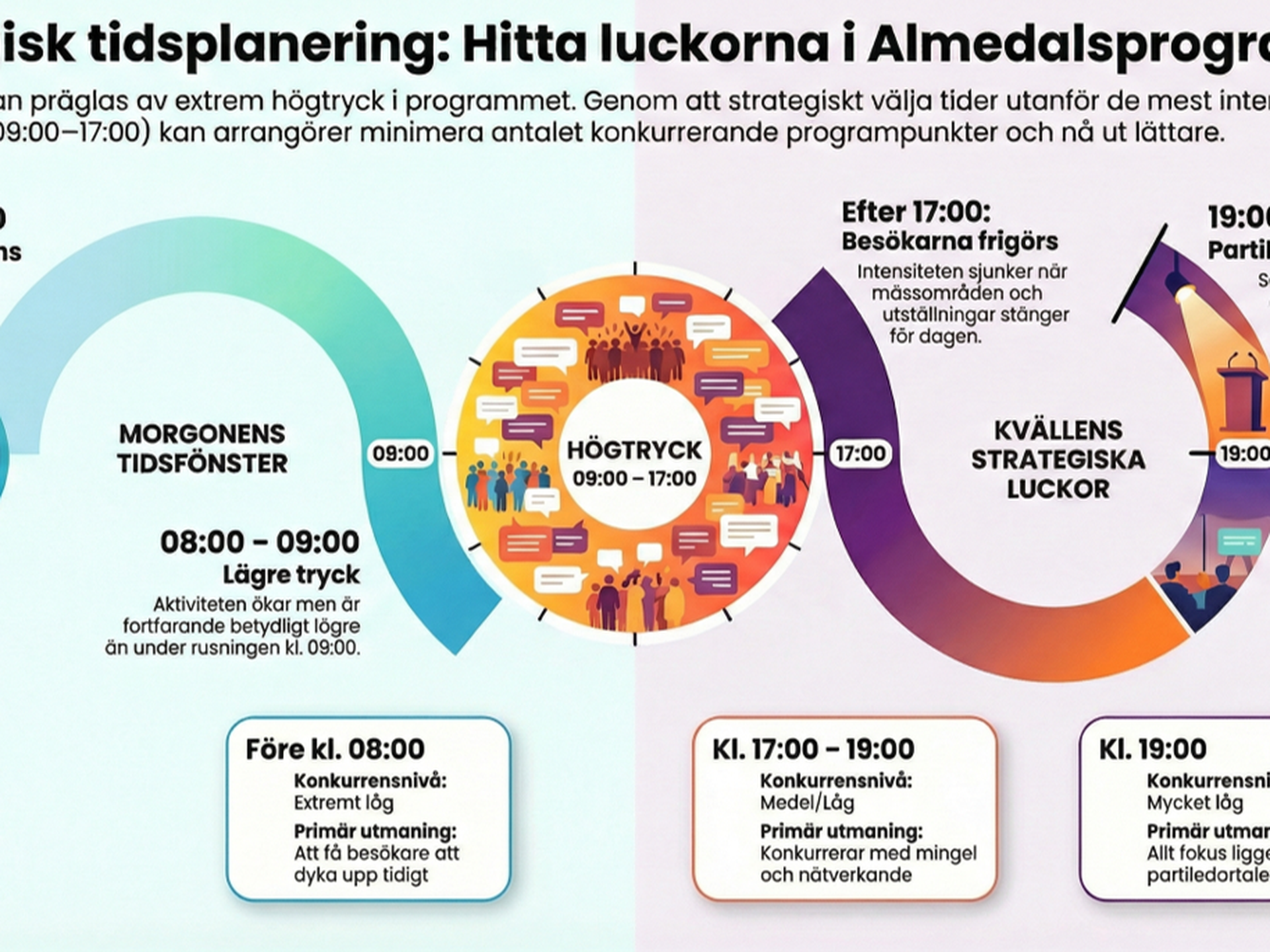 Att 2026 års vecka är ett valår kommer att styra en hel del. Politikerna är i kampanjläge och betydligt mindre konsensusorienterade. Efterfrågan på konkreta lösningar ökar på bekostnad av kloka resonemang. Slagord och kärnfulla formuleringar blir hårdvara. Förberedelserna för ett valår bör se annorlunda ut – dels blir det svårare att tränga igenom bruset, dels finns chansen att just din hjärtefråga adopteras av politikerna. Vill du att din närvaro ska slå igenom i valrörelsen behöver du en särskild, noga genomtänkt strategi för just detta.